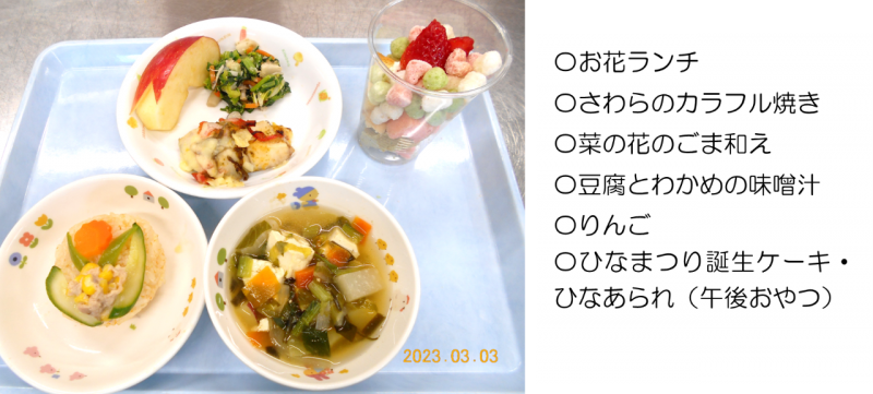 3月誕生会・ひなまつり献立(給食室より)