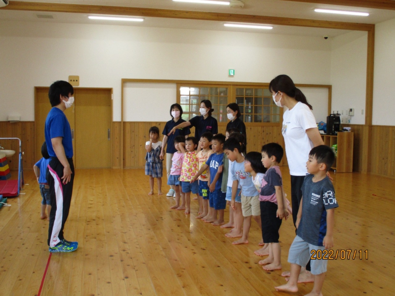 夕⽅延⻑保育は18:50におやつ(果物・お茶など)があります。