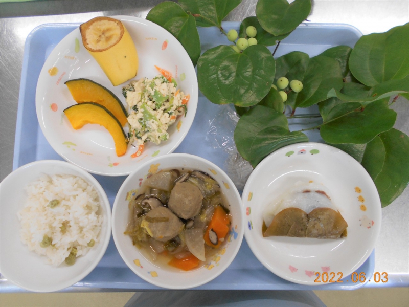 今日のおやつは『かしわもち風』でした♪(給食室より)